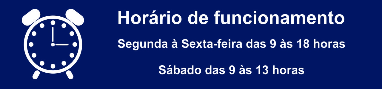 Seg a Sex: 9h - 18h / Sáb: 9h - 13h